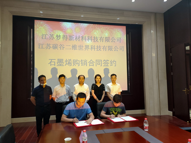 簽約儀式上,杭冬良董事長(zhǎng)與(yǔ)戴中秋董事長(zhǎng)簽訂瞭(le)戰略合作協議,杭康總經理與中晶張俊經理簽訂瞭(le)購銷協議,簽約後,江蘇夢得董事長杭冬良先生對中晶新材的支持表示瞭(le)感謝,杭董表示,石墨烯在電化學領域的應用即将進入一個爆發期,公司有著(zhe)多年電化學産品應用開發的經驗,将先進的材料應用至電化學領域一直是夢得人的追求,而石墨烯材料有著(zhe)優異的物理性能和化學性能,相信石墨烯材料在電化學領域有著(zhe)廣闊的應用天地。