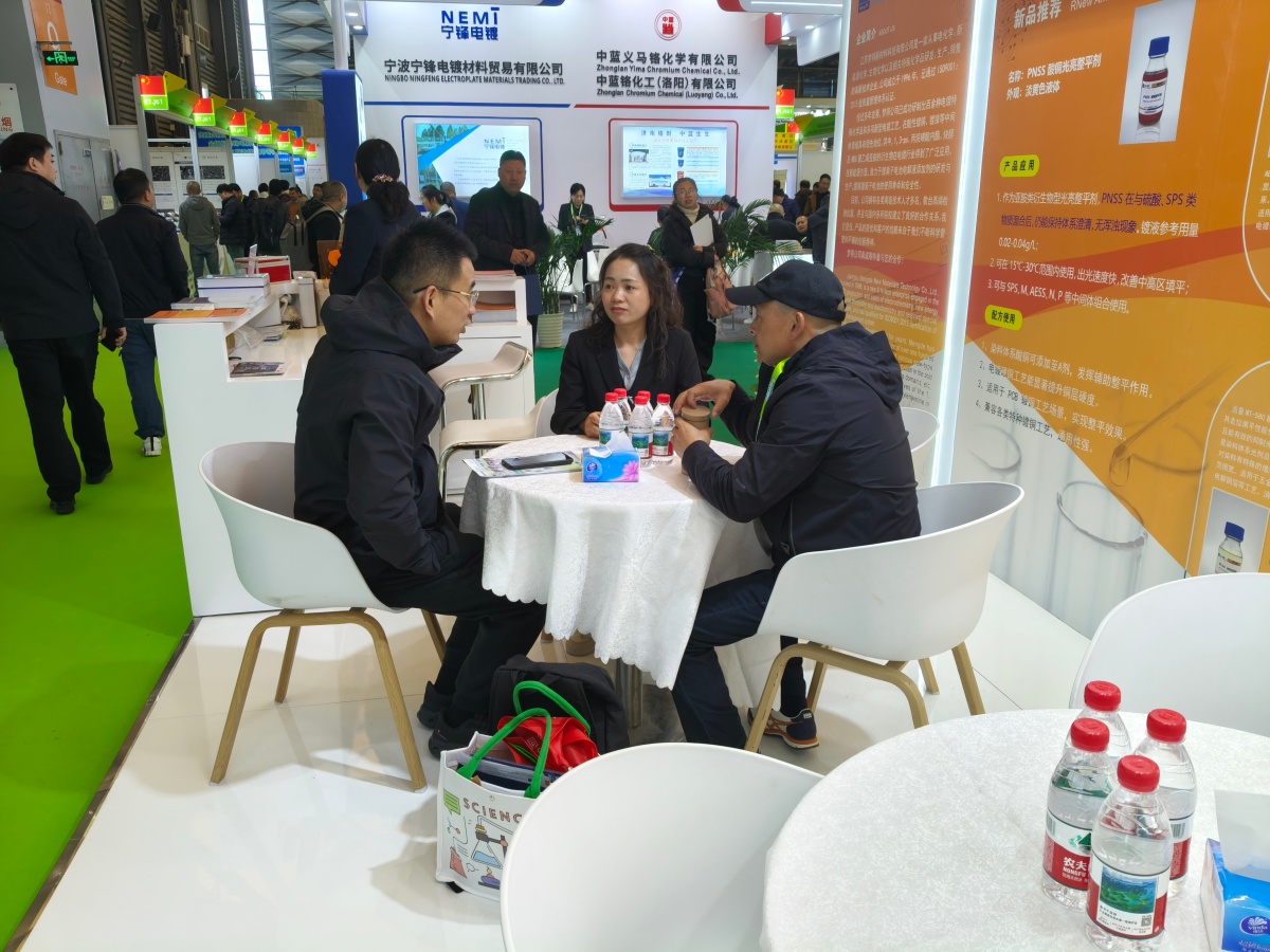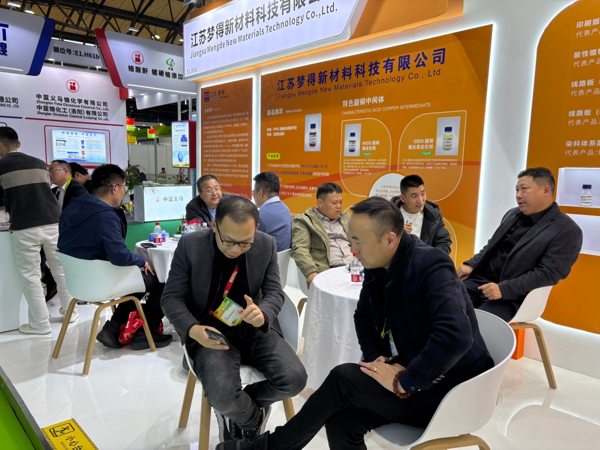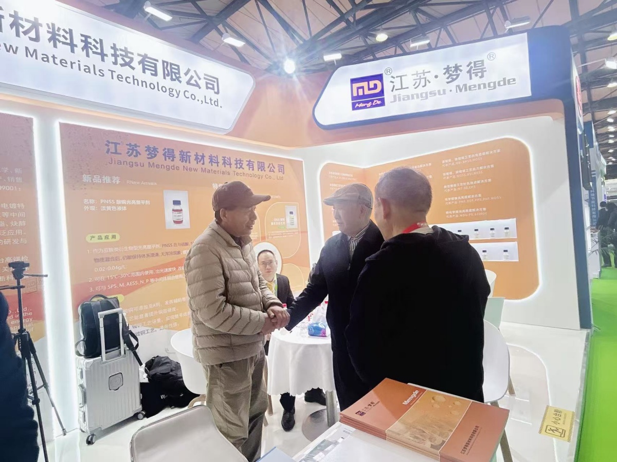走進E1館,江蘇夢得的展位設計現代而醒目,整體布局科學合理,充分體現瞭(le)公司“精益求精”的品牌理念。展台上,一系列自主研發的環保型電鍍化學品、高性能添加劑、各類型中間體等核心産品整齊陳列,吸引瞭(le)大批專業訪客駐足咨詢。我們的技術團隊準備(bèi)瞭(le)詳實的産品資料與生動的應用案例,通過現場演示與講解,讓每一位到訪者都能清晰地瞭(le)解江蘇夢得産品如何爲客戶提升生産效率、優化産品質量、實現綠色制造。
