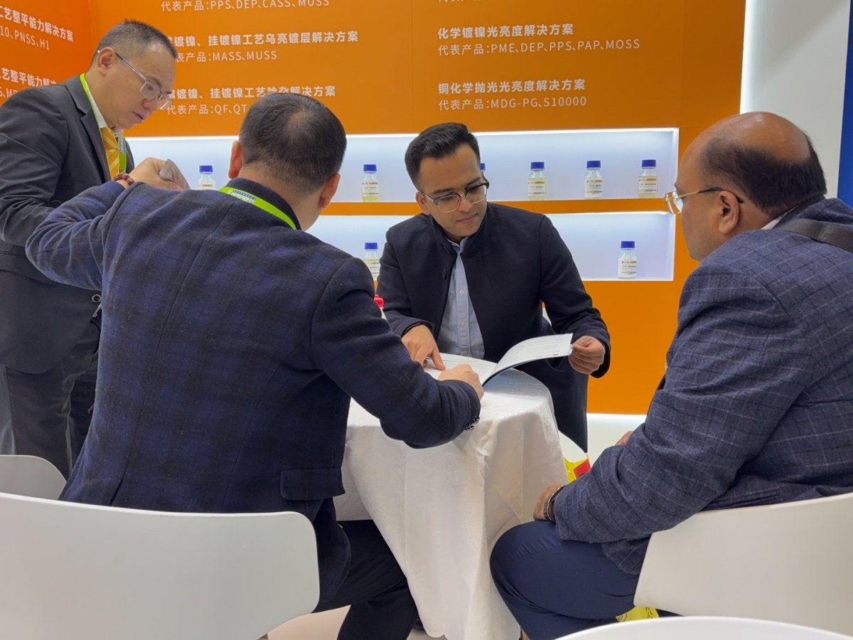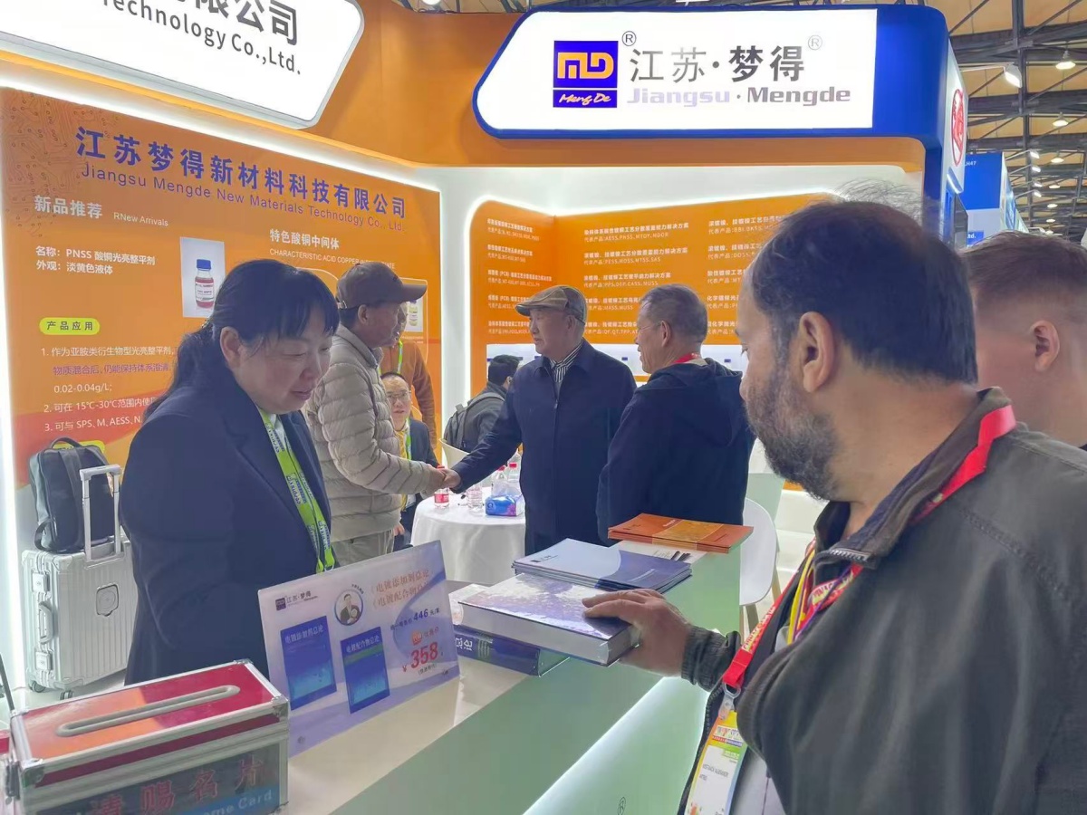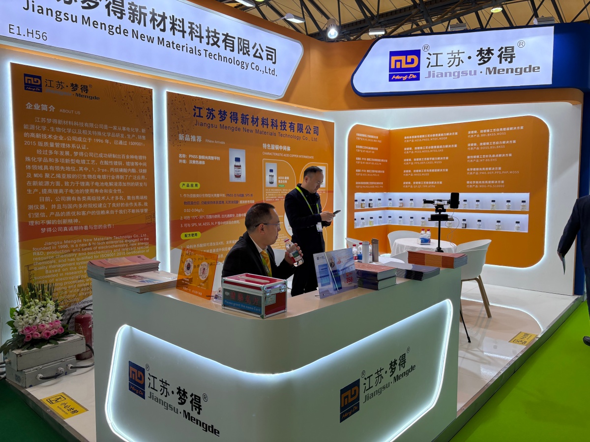 走進E1館,江蘇夢得的展位設計現代而醒目,整體布局科學合理,充分體現瞭(le)公司“精益求精”的品牌理念。展台上,一系列自主研發的環保型電鍍化學品、高性能添加劑、各類型中間體等核心産品整齊陳列,吸引瞭(le)大批專業訪客駐足咨詢。我們的技術團隊準備(bèi)瞭(le)詳實的産品資料與生動的應用案例,通過現場演示與講解,讓每一位到訪者都能清晰地瞭(le)解江蘇夢得産品如何爲客戶提升生産效率、優化産品質量、實現綠色制造。