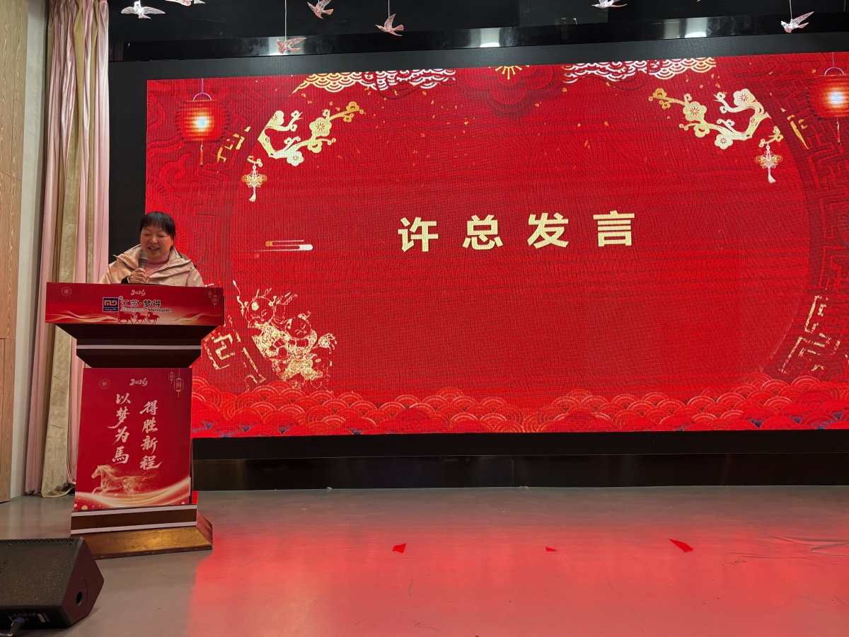 佳績的背後,離不開領導班子的高瞻遠矚,更凝聚著(zhe)每一位夢得人的拼搏與堅守。總經理杭康先生的年度報告,既是對過往的複盤,更是對未來的宣言。他用一組組詳實的數據、一個個亮眼的成果,回顧瞭(le) 2025 年江蘇夢得的輝煌成就與成長足迹:從核心産品的技術突破到市場份額的穩步擴張,從團隊凝聚力的持續增強到品牌影響力的不斷提升,每一份成績的背後,都凝聚著(zhe)全體夢得人的汗水與堅守。同時,杭總深刻剖析瞭(le)行業發展趨勢與市場機遇,清晰擘畫瞭(le) 2026 年的宏偉藍圖,提出瞭(le)切實可行的發展目标與戰略規劃。他強調,新的一年,全體同仁需繼續秉持公司核心價值觀,以 “行則必至” 的堅定信念,凝心聚力、勇攀高峰,共同書寫江蘇夢得更加璀璨的篇章。