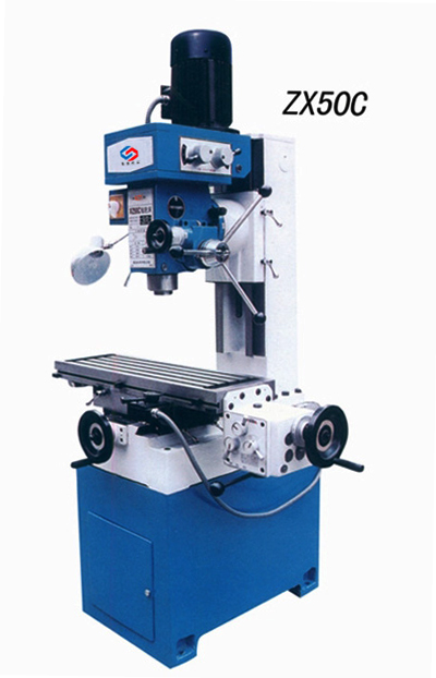 ZX50C鑽銑床 本機床爲多功能鑽銑床,立銑爲齒輪傳動,加工效率高裝有機械進給器,可實現工作台縱向自動進給,減少瞭勞動強度,提高瞭加工精度和表面光潔度.床身導軌淬火處理,有良好的耐磨能力。适用於各種中小型零件加工,特别是有色金屬材料;塑料;尼龍的切削,具有結構簡單,操作靈活等優點,廣泛用於單件或是成批的機械制造;儀表工業;建築裝飾和修配部門。 1工作台可縱、橫向移動, 2.底座爲整體鑄件,加工工件更穩定,精度更高! 3.具有鑽、銑、镗、磨、攻絲等多種切削功能機床。 4.主軸箱可垂直平面内左右回轉90°, 5.工作台可在水平面内左右回轉45° 6.工作台可縱向自動走刀,提高加工效率. ![]() ![]()