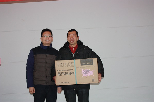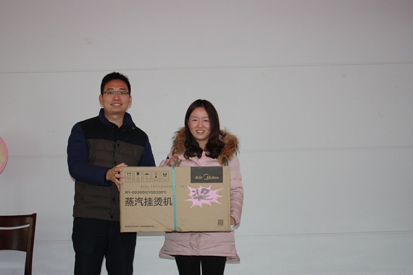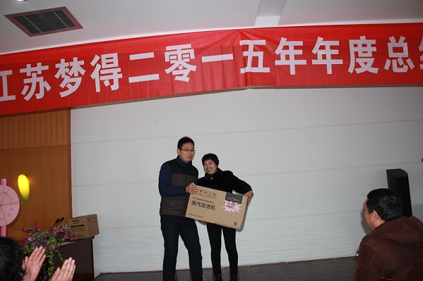 随後,大會現場(chǎng)的抽獎活動(dòng)和同時進行的各個部門員工表演節目 ,現場(chǎng)氣氛十分熱烈!華爲4G智能手機,全自動(dòng)豆漿機,蒸汽挂燙機,空氣淨化器,吸塵(chén)器,電磁爐炒鍋,堅果大禮盒,今年還有我們公司顧問李萬紅老師帶(dài)來的3份特别獎項--猴年紀念币等大獎均被幸運員工抽取,並(bìng)由杭總,貢總親自頒(bān)發!所有與會員工都是滿載而歸,大會在一片歡快的氛圍中結束 。